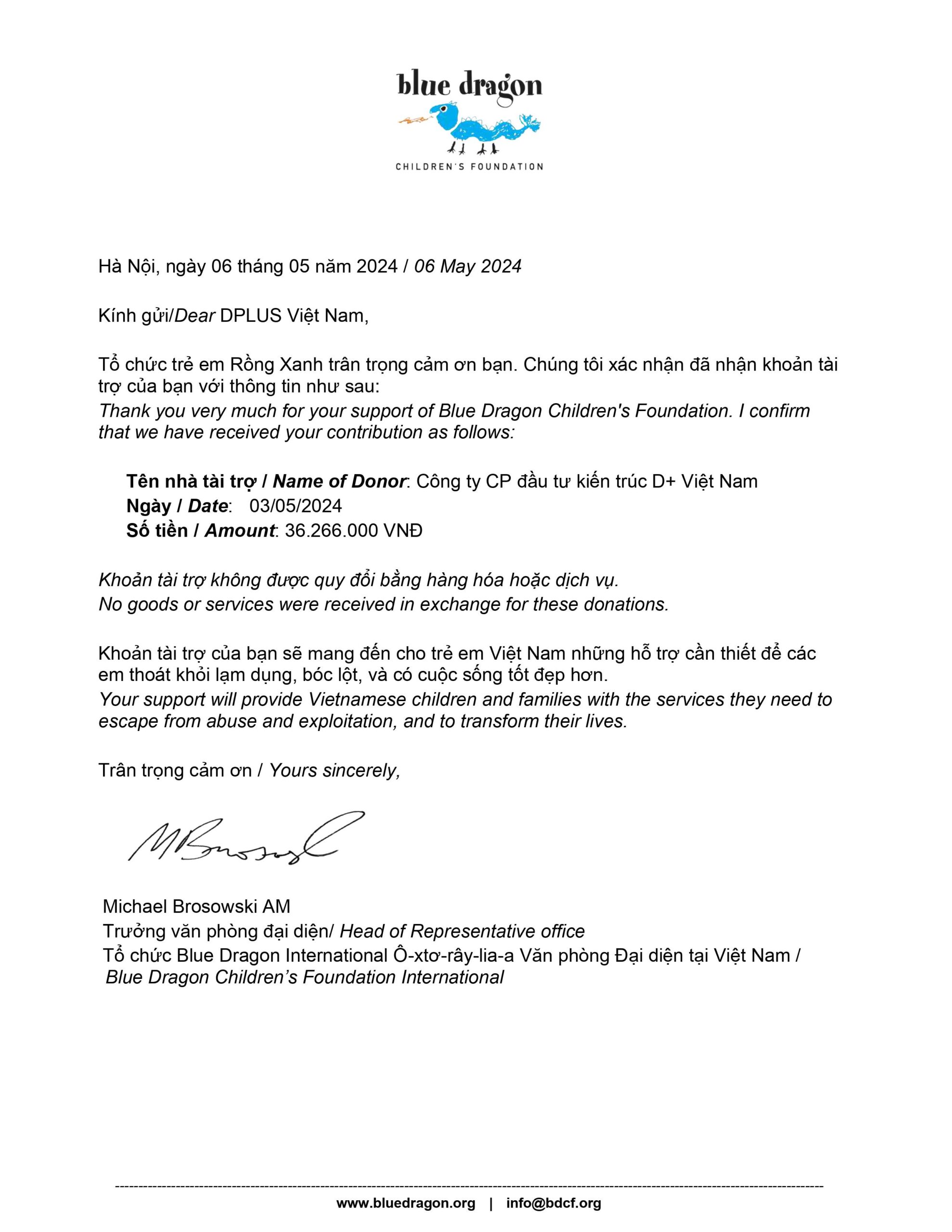Trên cung đường giao nhận yêu thương, mỗi một set quà bán ra sẽ góp phần giúp cho Carrier-dragon thêm rõ nét, mạnh mẽ và lan tỏa được nhiều lòng tốt hơn nữa. “Shipper rồng” sẽ vận chuyển niềm tin và sự ủng hộ của bạn đến với Blue Dragon Children’s Foundation – tổ chức phi lợi nhuận bảo vệ trẻ em khỏi nạn buôn người, bạo hành, nghèo đói… Một phần đóng góp nhỏ của bạn và DPLUS sẽ được gửi tới Quỹ, hỗ trợ cho việc cung cấp nơi ở an toàn, môi trường giáo dục, điều kiện chăm sóc sức khỏe cũng như các vấn đề pháp lý, quyền lợi của các em.
