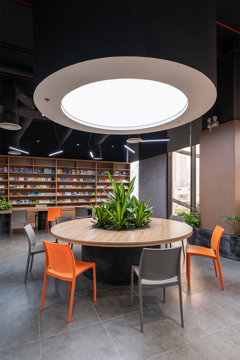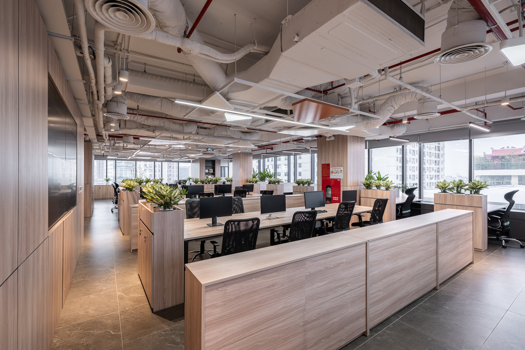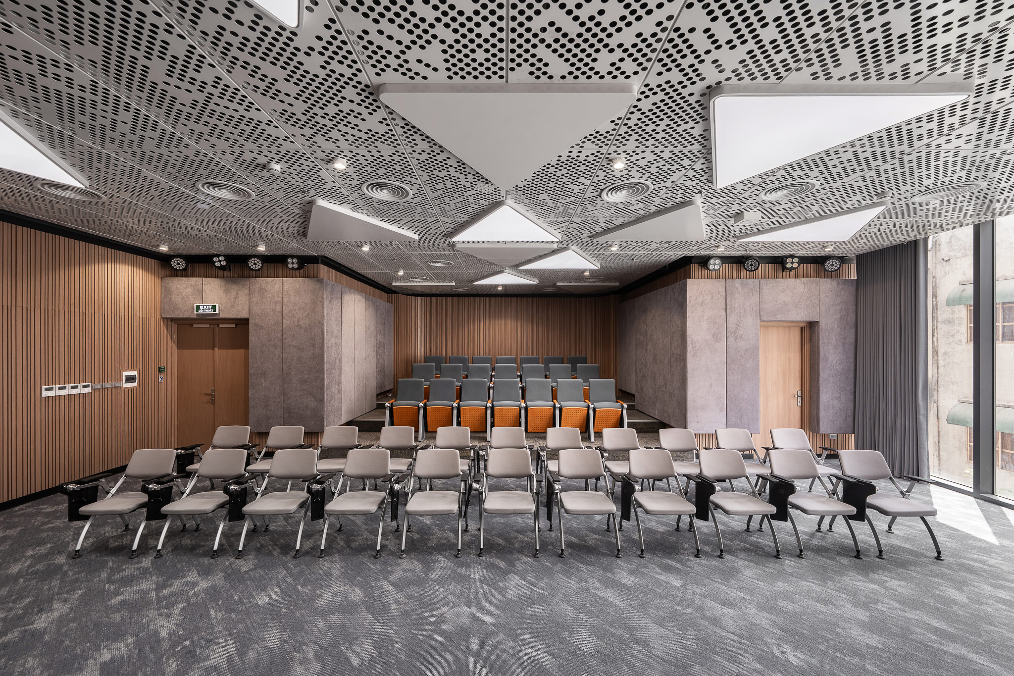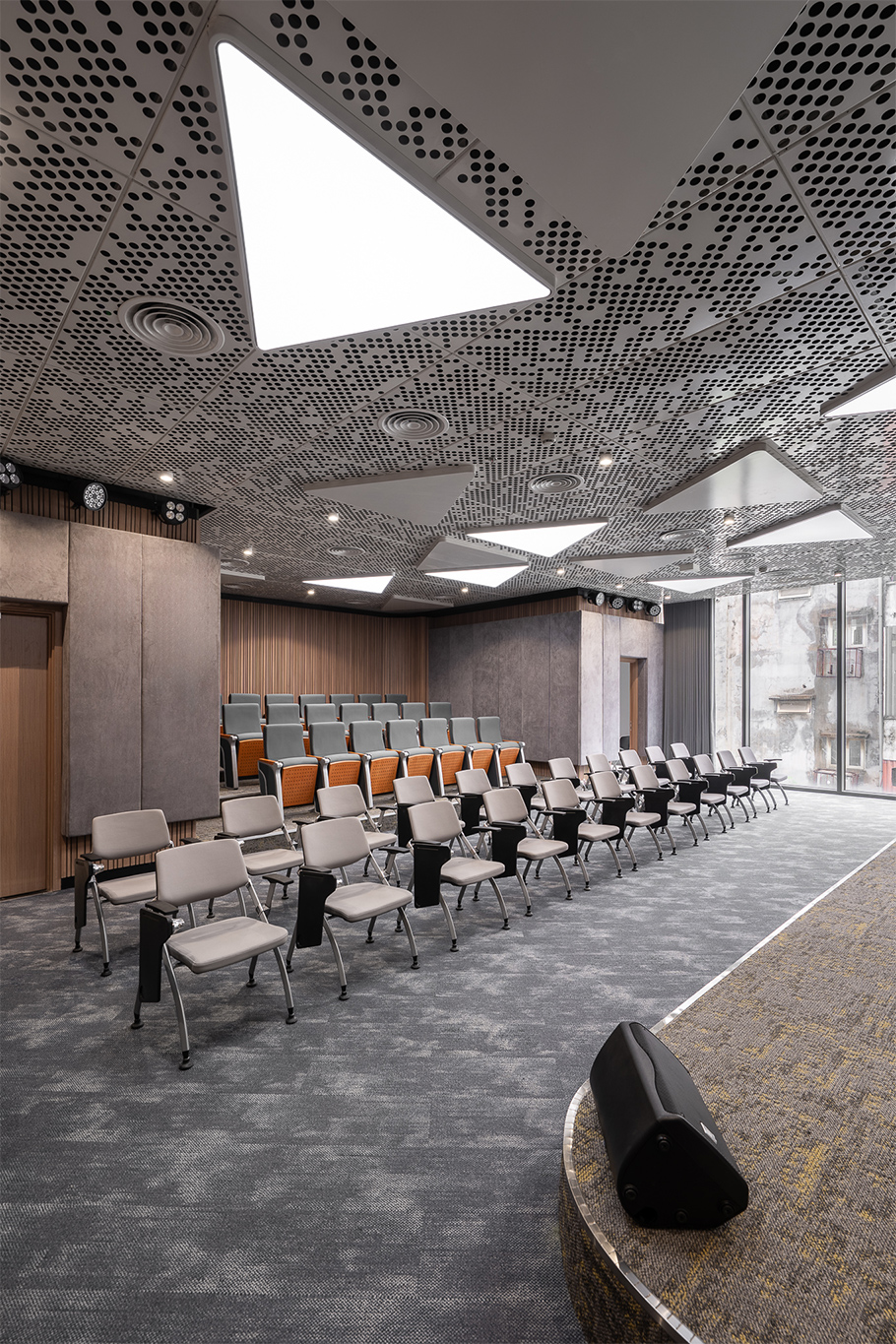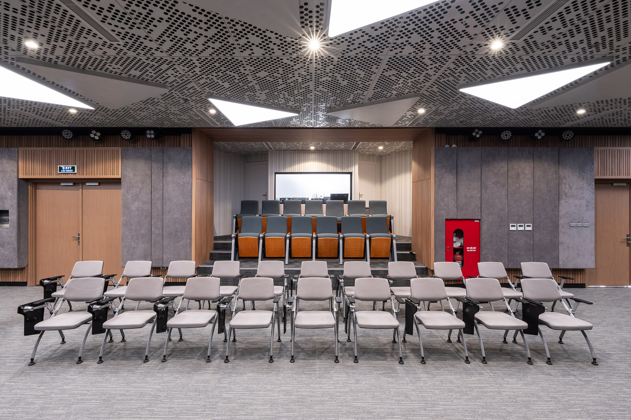 Concept nhấn mạnh sự phát triển liên tục và đồng bộ, đại diện cho một tập đoàn đa ngành công nghệ, tài chính và truyền thông hàng đầu. Hệ thống họa tiết được phát triển từ logo và cách tạo hình geometric được ứng dụng xuyên suốt trong tạo hình đồ nội thất, hệ trần, tấm tiêu âm, wayfinding tòa nhà… Sự nhắc lại các yếu tố thiết kế từ ngoại thất đến nội thất tạo nên liên kết thị giác, nhịp điệu cho không gian.