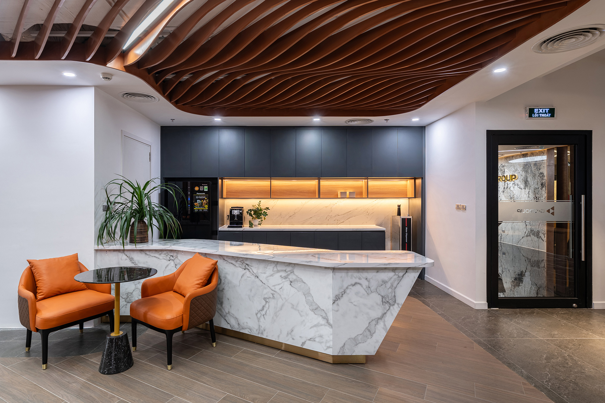 “Cascade Momentum” dòng năng lượng vô tận, động lực cho sức phát triển mạnh mẽ của một tập đoàn. Lấy hình ảnh Cascade, một thác nước đa tầng với dòng chảy uyển chuyển là cảm hứng thiết kế tòa nhà 18 tầng của G-Group. Mỗi tầng là một “bậc thang năng lượng”, nơi vật liệu, ánh sáng và hình khối hòa quyện, dẫn dắt mắt nhìn và cảm xúc di chuyển theo dòng chảy liền mạch.